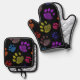 Neon Dog Paw Pattern Oven Mitt & Pot Holder Set