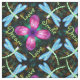 Neon Dragonflies Pink Flower Black Shimmer Pattern Fabric