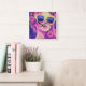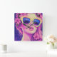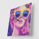 Neon Dream Girl with Floral Sunglasses Square Wall Clock
