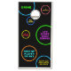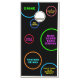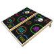 Bright Neon Colors and Black Background Cornhole Drinking Game Boards custom-printed with a mix of beer drink tasks, exercise and movement challenges, and creative things to do when your beanbag lands in circles. All game options can be personalized in the template editor so you can create your own unique drinking game specific to your cottage, cabin, house or a specific party such as a 21st birthday, graduation, holiday, or wedding. This design is perfect for a longer corn-hole play time or tournament because it's not constant drinking and leaves room for silly and wacky tasks mixed in with options like "high or low score team drinks", "jumping jacks or squats", "give a toast to a random object", and "recite any song as a poem". Everyone will have fun playing this unique and creative bean bag toss game!