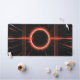 This image features a striking abstract design centered around a glowing red ring that resembles a solar eclipse or a futuristic portal. The ring is surrounded by sharp, energetic red and white light beams that shoot outward in multiple directions, forming a dynamic grid-like pattern. The background is deep black, enhancing the contrast and intensity of the luminous red and white lines. The overall composition evokes a sense of energy, tension, and motion, blending sci-fi aesthetics with digital art.