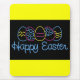 This design features decorated eggs in neon colors of pink, yellow, purple and blue. Happy Easter is printed on the bottom of this design. A black backround is applied to the back. This design is featured on assorted backrounds and two styles of mouse pads. You can customize this item to your liking.