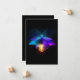Antique, mechanical firefly with light bulb and thin wings glows orange, purple, turquoise on black background. Steampunk style.