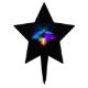 Antique, mechanical firefly with light bulb and thin wings glows orange, purple, turquoise on black background. Steampunk style.