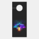 Antique, mechanical firefly with light bulb and thin wings glows orange, purple, turquoise on black background. Steampunk style.