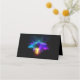 Antique, mechanical firefly with light bulb and thin wings glows orange, purple, turquoise on black background. Steampunk style.