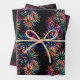 A vibrant and bright neon firework burst pattern on a rich black background.