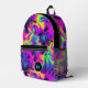 Kick off your back to school in style with this funky Neon Flame tie dye backpack. This fun, stylish custom backpack features a very bright and colourful tie dye design on a black background. A monogram initial text template is included - use it to personalize your bag or remove it, the option is yours. This backpack also black colour block strip at the top of the front pocket, complimenting the monogram. Feel free to change these to suit your style!