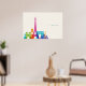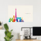 Neon France Skyline Poster