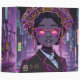 Glowing neon lights transport you to a futuristic world in this eye-catching graphic design featuring a young female character with a cyberpunk aesthetic. The bold color palette and technological elements bring a captivating and edgy feel to the design, perfect for fans of anime, technology, and futuristic styling. Personalize this binder design with your own name or other text in a graffiti-style font using the provided template. Search ID1028 to see other products with this design.