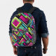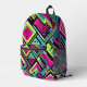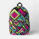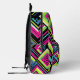 Brighten up your day with the Neon Geometric Retro Vibes Backpack. This design combines bold neon pink, electric green, cyan, and black in a series of dynamic geometric shapes. The sharp lines, triangles, and zigzag details give this backpack a playful, energetic feel reminiscent of retro 80s street art. Perfect for those who love bold, colorful designs, this backpack is a vibrant statement piece for everyday use or travel.