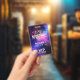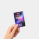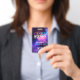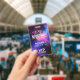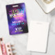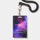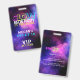 Trendy neon glow in the dark purple pink blue neo vibrant colorful Sweet Sixteen party lanyard invitation with VIP pass access badge.