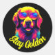 Neon Golden Retriever - Stay Golden round sticker