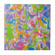 Neon Graffiti-Urban Edgy Tile With Unique Original Abstract Art Hand Painted Brushstrokes In Bright Vivid Neon Colors