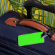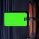 Luggage Tag featuring a solid neon green background with light gray font. Designed by Alma Wad, this piece offers a simple yet trendy look. Personalize both sides with your details today.