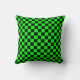 Neon Green & Black Chess Pattern Throw Pillow