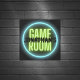 Neon green and blue effect sign "GAME ROOM" with custom name, perfect for teen boy's game/arcade room.