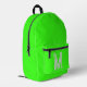 Printed Backpack with a neon green solid background and bold white font Simple and trendy design by Alma Wad. Personalize it with your monogram now. Great for trend-conscious teens, fashion-forward young professionals, and parents looking for a standout school bag for their kids.
