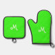 Add a splash of your unique flair by placing your fancy monogram right in the center of this vibrant neon green background. Introducing the Oven Mitt & Pot Holder Set – a bright and eye-catching addition to any kitchen. Perfect for those who love to cook with style, this set is ready to be customized just for you. Snap up this cheerful and practical kitchen accessory and make it uniquely yours today!