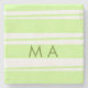 Neon green stripes Greek pattern letter monogram Stone Coaster
