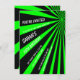 Neon Green Sun Beams Birthday Party Invitation