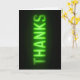 A neon sign displays the word 'THANKS' in bright lime green against a black background.