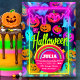 Neon Halloween light rainbow Glowing Ghost bat pink blue spider pumpkin Glowing Gradient Rectangle Frame light rainbow Halloween pumpkin purple pink invitation for birthday celebration and Halloween with family and friend for women and girls for halloween lover