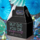 Personalized Bachelorette Party or Birthday Celebration Hangover Relief Kit with funny "But did you die" quote and custom text with the bride's name, party destination location, and date in bright neon blue and pink and black. All colors, fonts and text can be edited to match your party.