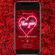 This Valentine's Day invitation design is a visually stunning blend of romance and modern elegance. The background features a vibrant wall of deep red roses, creating a rich and luxurious texture that symbolizes love and passion. In the middle of the rose-covered wall, there