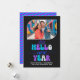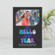 Neon Ice Hello New Year Blue Retro Photo Holiday Card