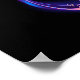 Glowing, purple infinity symbol with flying, luminous, blue hummingbird on black background. Neon.