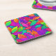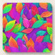 Neon Leaves: Cartoon Flow Beverage Coaster