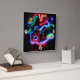 10.75” x 10.75” acrylic wall clock with an image of neon lights in swirling glass blocks on black.