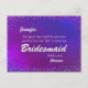 A very prettypurple glow background makes this a very special and unique will you be my bridesmaid postcard. Note: This is a graphic artwork print, there is no messy glitter.