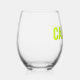 Neon Lime Yellow 3D Elegant Name Bridesmaid Stemless Wine Glass