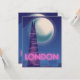 Neon London travel poster with a full moon over the famous London Skyline.