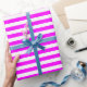 Neon Magenta and White Simple Horizontal Striped Wrapping Paper