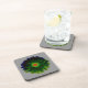 This awesome cork coaster features a photograph of a marigold flower that has been manipulated to create a beautiful neon flower with a bright red and green centre surrounded by petals with subtle shades of yellow, green and blue. The flower sits on a slate grey background to emphasize the bright centre and create a moody atmosphere.