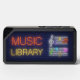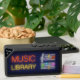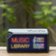 The neon-inspired elements add a touch of enchantment to the traditional music staff and notes, infusing the design with a modern and dynamic feel. The "Music Library" inscription highlights the speaker's capacity to store and play an extensive collection of tunes, making it a portable hub for all your favorite melodies.