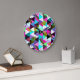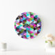 This large clock has a Memphis style triangle pattern in the bright neon colors. This Florida style design has many geometric shaped patterns inside the triangles along with Miami palm leaves scattered throughout the pattern. You can make the pattern on the wall clock bigger or smaller. In customize there are three other types of hour marks that you can change if you don’t like the dots/dashes. This clock makes a stylish gift for anyone that loves the 80s Memphis style for home decor.