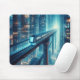 A high-speed monorail gliding between neon skyscrapers, its windows reflecting the vibrant city below.