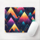 A vibrant and abstract geometric pattern featuring overlapping triangles in a kaleidoscope of neon colors. The triangles resemble jagged mountain peaks, creating a dynamic and energetic composition against a dark background. The image is filled with bright hues, including pink, orange, yellow, blue, and purple, creating a visually stimulating and eye-catching design