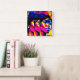 NEON MUSE: Electric Iridescence Square Wall Clock