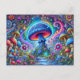 Neon Mushroom Glow Psychedelic Fantasy Forest Postcard