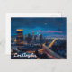 This vibrant postcard showcases Los Angeles at dusk, featuring its dazzling skyline, glowing highways, and the famous Hollywood sign in the distance. The stunning blend of warm lights and cool evening tones captures the energy and glamour of the City of Angels. Perfect for collectors, travelers, or anyone who loves iconic urban views.