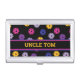 Neon pink, yellow and purple on black pickleball pattern, custom text Business Card Case. Perfect as a gift for pickleball player. Customizable text.