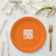 Solid color Paper Plates n neon orange (ff6600) solid color background and a bold cover logo . Personalize it now . Modern and trendy design by Alma Wad for company parties .