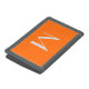 Trifold Wallet with neon orange solid color background and white font .Simple and trendy design by Alma Wad .Personalize it with your monogram now .
