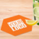 Coasters with a solid neon orange background and a cover logo. Personalize it right now. Alma Wad's design is modern and trendy. Ideal for a restaurant/café or any other corporate event.