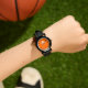 Modern watch for kids in neon orange solid color background and a cover logo. Personalize it now . Modern and trendy design by Alma Wad .